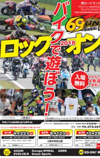 4月22日堺カートランドで行われるミニバイクレース「69ON」にてブース出展しております